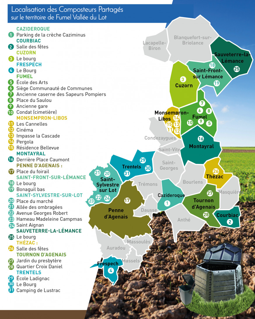 Ci-contre : Site de compostage partagé de la bastide de Tournon-d'Agenais inauguré le 28 juin 2022