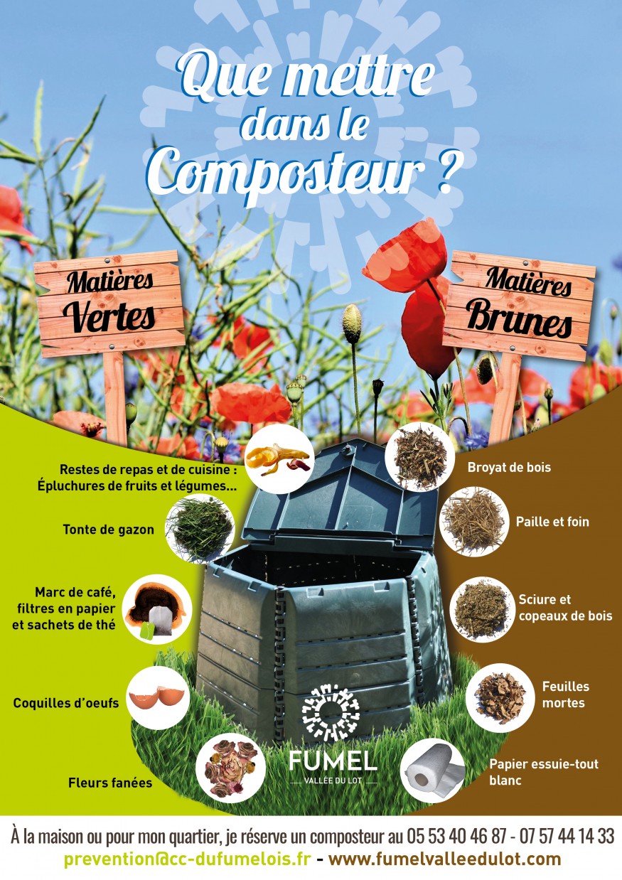 En moyenne en France, le sac d’ordures ménagères est composé de 37% d’emballages recyclables, de 33% de biodéchets (matière organique) et de 30% d’ultimes. L’enfouissement de ces ordures ménagères ne permet pas la valorisation de la matière organique qui les composent. Pour répondre à cela, le processus de compostage est une des solutions que vous propose Fumel Vallée du Lot.