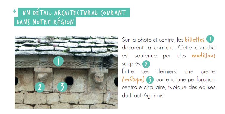 Dans la région, l’art roman connaît son plus grand développement au XIIè siècle, profitant d’une société apaisée et, surtout, d’un essor démographique et économique. Surgissent alors une multitude d’églises rurales, au plan très simple. La sculpture, lorsqu’elle existe, est sommaire, les communautés n’ayant pas les moyens d’employer des sculpteurs chevronnés, sauf la priorale de Monsempron-Libos qui dépendait de la puissante abbaye d’Aurillac.