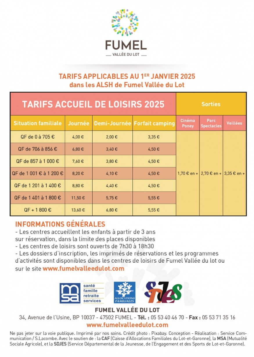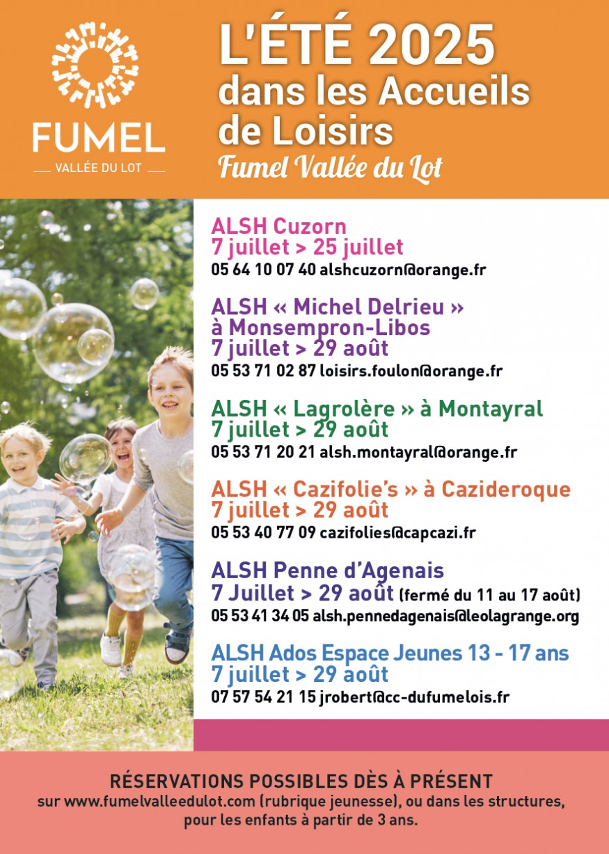 FUMEL VALLEE DU LOT gère 6 Accueils de loisirs extrascolaires 3-17 ans.
