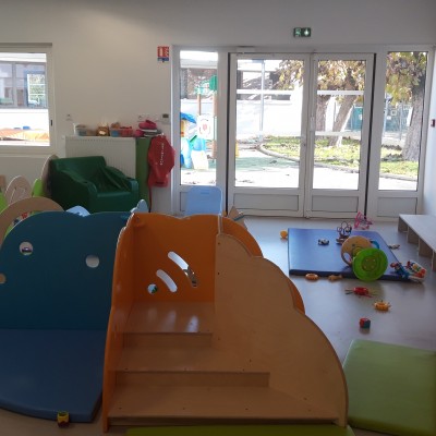 Les enfants sont accueillis depuis Avril 2017 dans un bâtiment neuf : Le Pôle Petite Enfance regroupant la crèche et le Relais Assistance Maternelle.